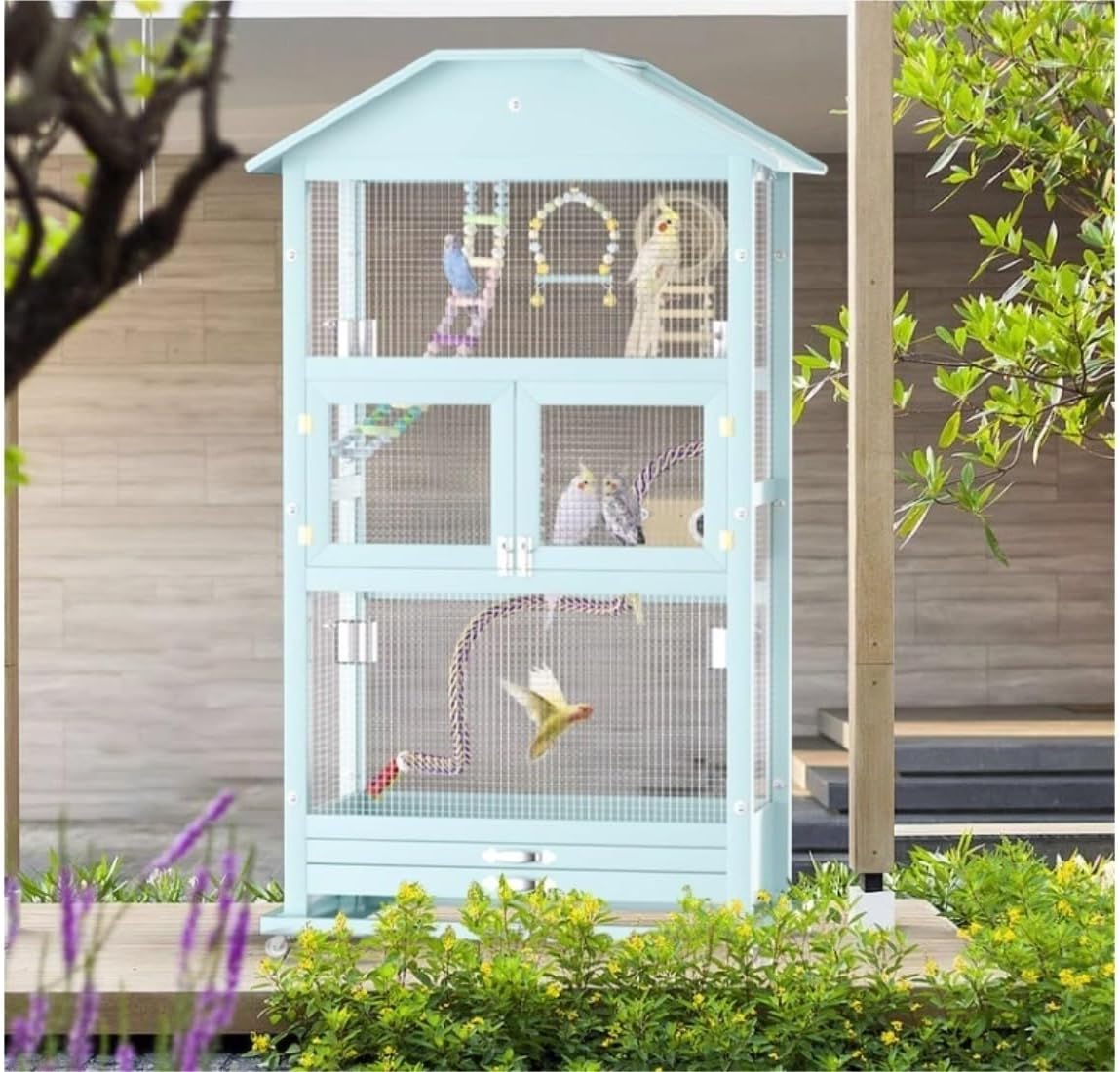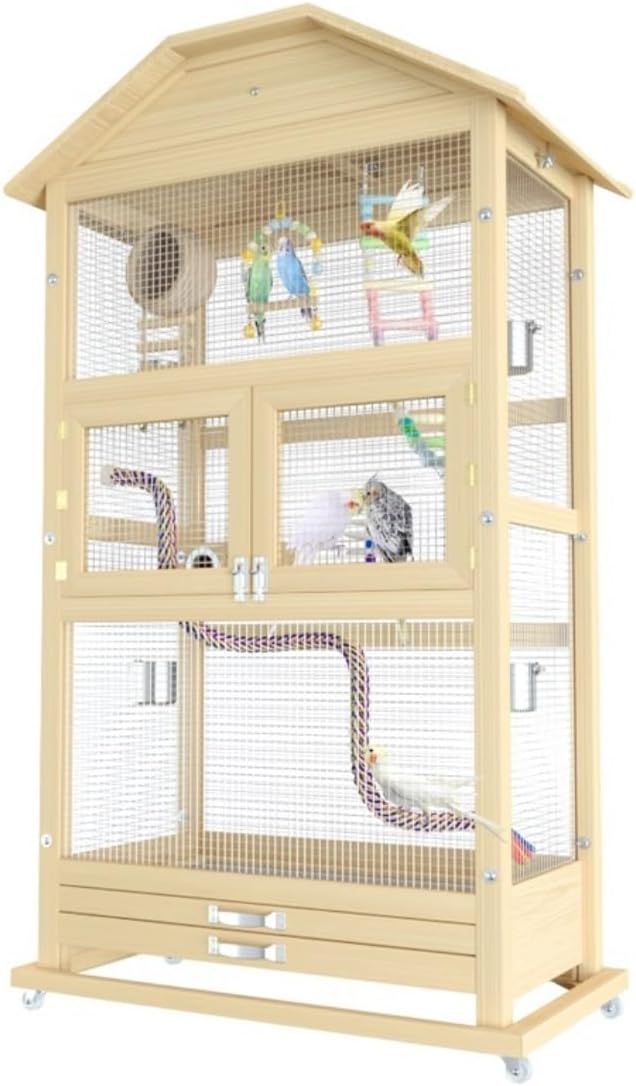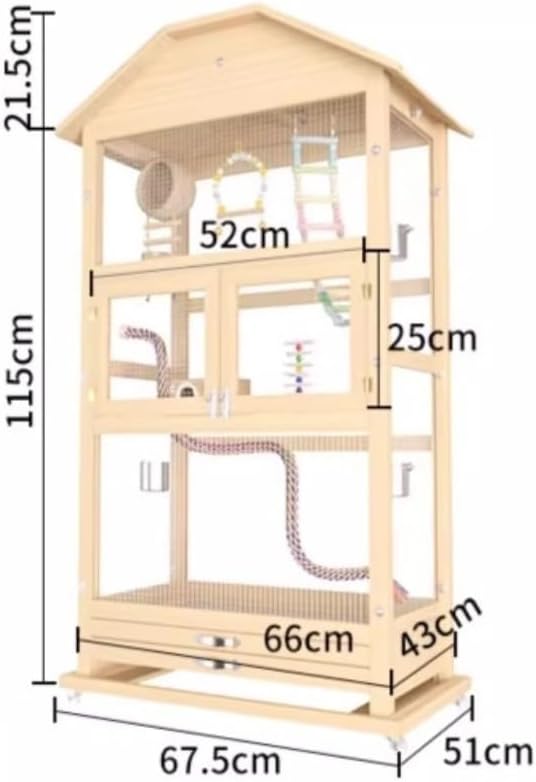 Keep the house clean: It can help you prevent messy seeds from spreading on the floor and keep the floor clean. In addition, it is easy to clean and suitable for most bird cages, parrot cages, etc., allowing free and comfortable movement.Product name: Bird CageMaterial: Solid WoodSize: 67.5*51*136.5cmPacking list:1 X Bird Cage (Does not include other decorations)Versatile and suitable for a variety of pets: Suitable for a variety of pets, providing versatility for different species, higher comfort, and a warm home for your love birds.Can be installed anywhere you need: Indoor and outdoor use, suitable for parrots, birds, cockatiels, parakeets, budgies, lovebirds and various birds.