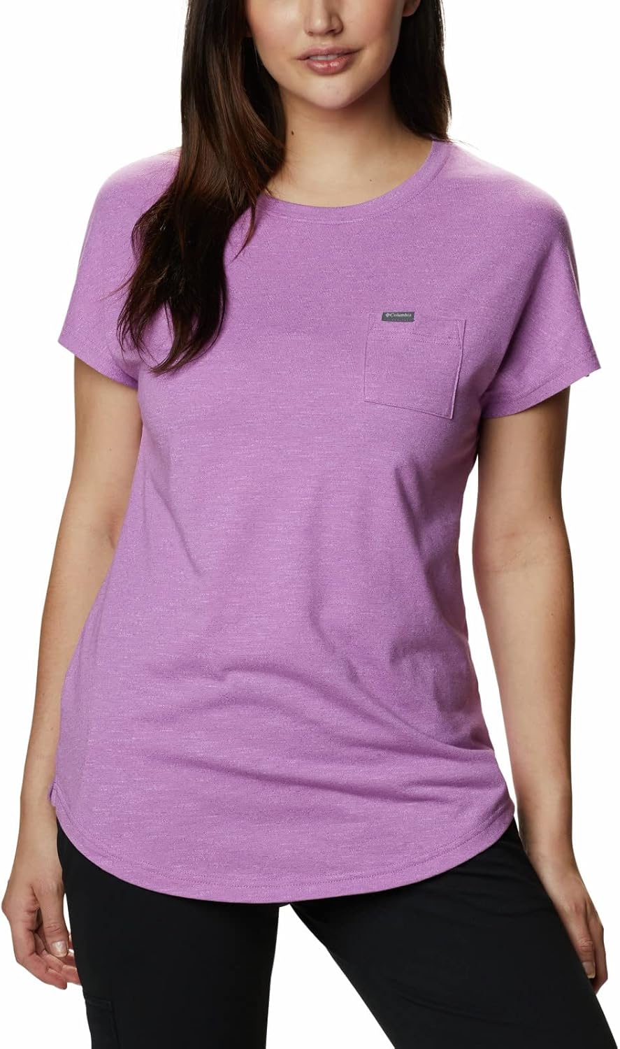 The Columbia Women's Cades Cape Tee Shirt, is made to perform in the middle of summer – with our unique sweat-wicking technology keeps you dry, cool, comfortable and focused on the path in front of you. This sun-loving T-shirt features our signature Omni-WICK fabric designed to quickly moves perspiration from the skin into the fabric where it spreads across the surface to quickly evaporate—keeping you cool, dry and comfortable. The tight weave construction adds a multipurpose pocket at the chest, while the crew neck fit make all-day wear and movement comfortable. Our signature logo is featured on the chest for subtle style. This Columbia's T-shirt comes in multiple sizes and colors. Extended sizing available. Active and Regular Fit. To ensure the size you choose is right, utilize our sizing chart and the following measurement instructions: For the sleeves, start at the center back of your neck and measure across the shoulder and down to the wrist. If you come up with a partial number, round up to the next even number. For the chest, measure at the fullest part of the chest, under the armpits and over the shoulder blades, keeping the tape measure firm and level.