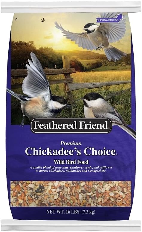 Feathered Friend 16lb Chickadee's Choice Wild Bird Food. Chickadee's Choice Wild Bird Food is a premium blend of select nuts and seeds to attract chickadees and other backyard birds.