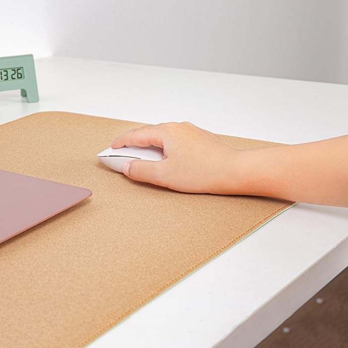 Feature:1. With spacious room for your keyboard, mouse, books, and other desk widgets, and a couple of coffee.2. Made of flexible PU Leather, the Soft surface provides a nice tactile feel, from the rich leather texture and color to the natural cork non-slip backing and the fine stitching, the mat will complement your stylish workspace.3. It has no unpleasant smell, come with roll flat and not folded, with a tie, which you can take it anywhere easily!4. This protective mat is large enough to organize your Laptop, keyboard, mouse, sketchbook, or journal, no more mess.--------------------------------------------------------- Material: PU Leather + Cork --------------------------------------------------------- Size: 60x30cm(24x12in)70x35cm(28x14in)80x40cm(31x16in)90x45cm(35x18in)100x50cm(39x20in)120x60cm(47x24in)------------------------------------------------------- This cork mouse pad, suitable for desktop or laptop computers. it is made of natural cork material, which is soft and comfortable to touch. the surface is smooth and flat, providing a seamless mouse movement experience with excellent anti-reflective performance, allowing you to work or play games more freely!